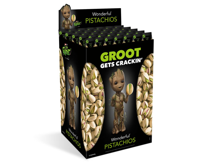 Fans of the adorable character will be captivated by a limited-edition 24-ounce bag of Wonderful Pistachios Roasted & Salted featuring everyone’s favorite baby tree. Accompanied by “I Am Groot”-themed in-store point-of-sale displays to reach shoppers, the collectible bag will be available starting in early July and sold exclusively in-store and online by Walmart in the U.S. while supplies last.