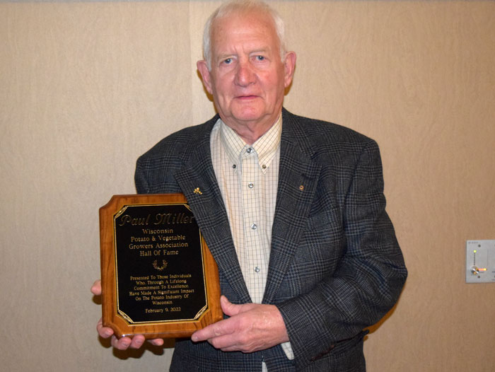 Paul Miller of Paul Miller Farms, Inc., Hancock, was inducted into the Wisconsin Potato & Vegetable Growers Association Hall of Fame at the industry’s annual awards banquet held February 9, 2022 in Stevens Point.