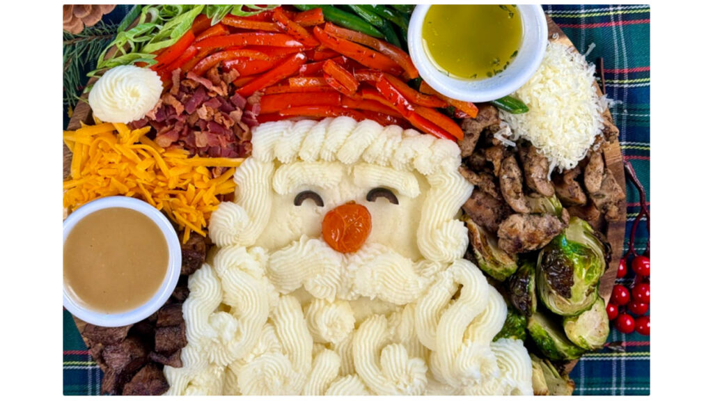 - Charcuterie’s coziest cousin, a Santa Mashed Potato Board, to dazzle your coworkers