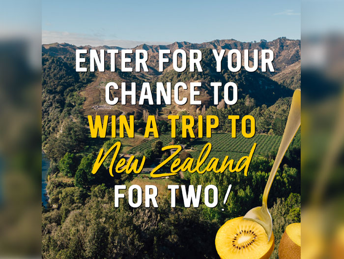 ORANGE COUNTY, CA – Zespri takes its Taste the Obsession consumer campaign to a whole new level by offering consumers a chance to win a trip to New Zealand to visit their orchards and meet the passionate growers who are obsessed with growing the best-tasting kiwifruit. The lucky recipients of Zespri’s sweepstakes can learn first-hand why ZespriTM SunGoldTM Kiwifruit is a winner of the Good Housekeeping Healthy Snack award for the third year.