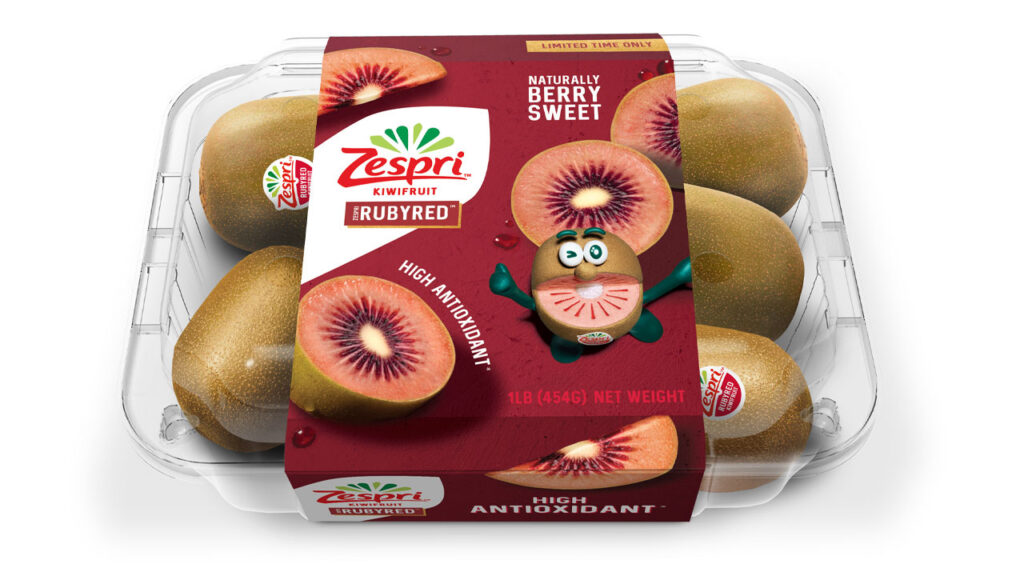 ORANGE COUNTY, CA – ZespriTM is excited to launch RubyRed TM Kiwifruit this season in the U.S. and Canada. It complements the Zespri portfolio of SunGold® and Green kiwifruit reaching nutrient-focused shoppers looking for something fresh and exciting. Shoppers can have a new eating experience with RubyRed Kiwi’s vibrant red interior and delicious, berry-sweet taste. The innovative fruit is high in antioxidant Vitamin C. It also includes anthocyanins, naturally occurring pigments that give it its vibrant red color. Zespri rolled out RubyRed Kiwi on the West Coast last season in a limited time trial that allowed the brand to test logistics and confirm strong consumer enthusiasm. It also earned them an Innovation Award recognizing Zespri for introducing a novel product than enhances produce consumption.