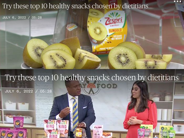 Zespri’s SunGold TM Kiwifruit were featured in Good Housekeeping magazine in addition to being highlighted during a national broadcast segment on the TODAY Show on July 6. During the segment, Stefani Sassos, RDN, Deputy Director at Good Housekeeping Institute, shared information on the selection process and the snacks that won the Healthy Snack Awards.