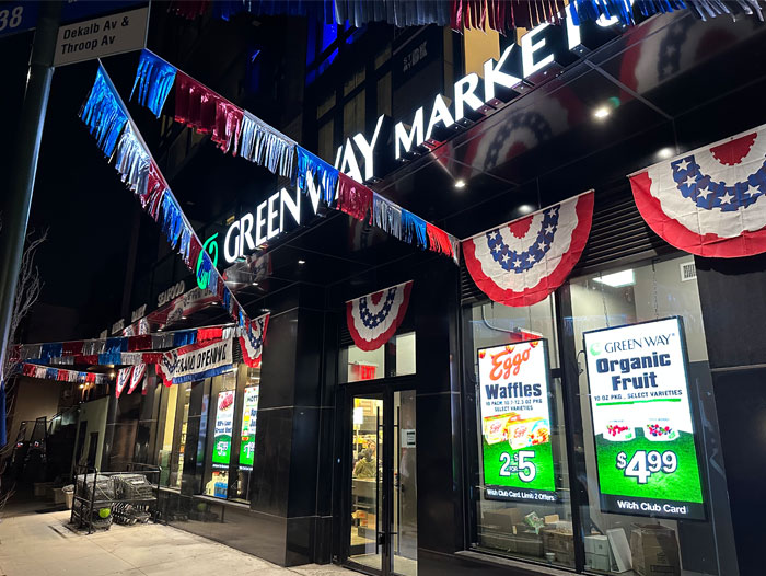 The 8,000 sf. market is owned and operated by Rowhie Said, a lifelong grocer who has managed his family’s grocery stores in the Flatbush and Prospect Park areas of Brooklyn. He selected the DeKalb Avenue location as it provided the perfect setting to bring in a small, but high-quality grocery. “Green Way Markets is a modern-day supermarket banner perfect for the neighborhood, which is in the midst of a gentrification. We are offering a broad range of lines at affordable price points to accommodate the purchasing needs of all our customers. We are especially excited about the extensive selection of organic and natural lines of produce.”