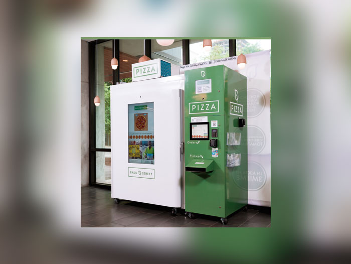 Keeping quality and convenience as forefront values, Basil Street’s kiosks feature three 10-inch Italian style, thin-crust pizza offerings: four-cheese, pepperoni, and a “Pizza of the Month,” selling between $6.95-$14.95. All of Basil Street’s pizzas are made with the freshest ingredients and then flash-frozen, to preserve the flavor and freshness, before being cooked-to-order in about three minutes. The cooking process utilizes their patented three-element non-microwave speed oven. The combination of the revolutionary oven technology and pizza quality creates a finished product that rivals an elevated pizzeria. Basil Street has figured out how to deliver a brick-oven pizza experience in a fraction of the time.