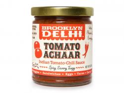Tomato Achaar is a condiment made with locally-grown tomatoes, tamarind, a mix of Indian spices, red chili powder, unrefined cane sugar and sesame oil. It has a savory, spicy and tangy flavor. Traditionally, achaar is eaten with rice, curry, dal and yogurt, but you can top most anything with it.