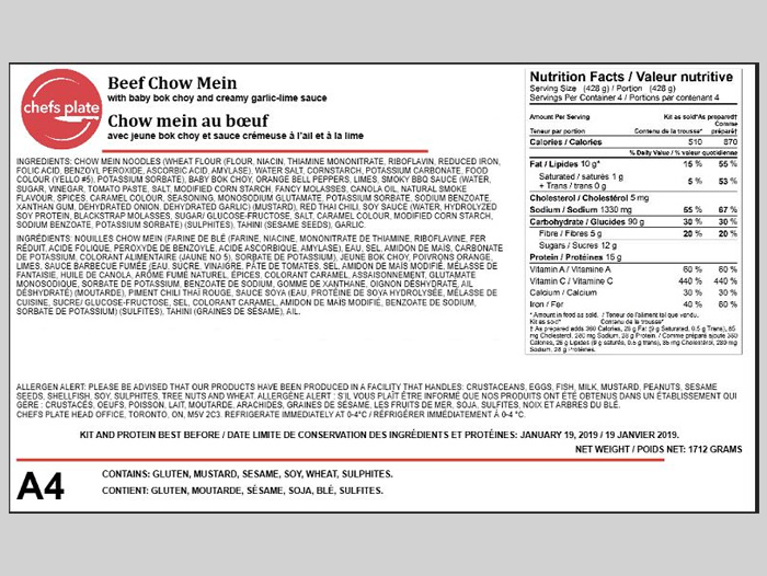 CFIA: Hello Fresh and Chefs Plate brand Meal Kits recalled