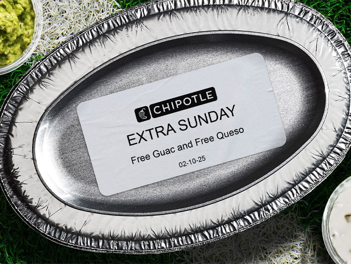 “Football’s most watched game is the perfect stage for over-the-top moments, and we’re here to make it even more extra with free Chipotle,” said Chris Brandt, Chief Brand Officer, Chipotle. “We’re giving fans something to celebrate when the game is over – free Guac and Queso Blanco – on ‘Extra Sunday.'”