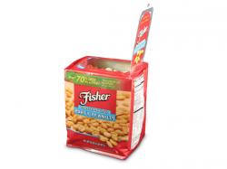 The PrimaPak™ package is designed to replace bulky rigid jars, blow-molded containers, injection-molded packages, composite cans and stand-up pouches. Because it is stackable, the PrimaPak™ technology improves package cube by 30 percent or more. The Fisher Nuts