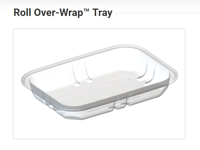 The Roll Over-Wrap™ tray has received multiple comprehensive patents, making it the world’s only patented 100% recyclable, smooth-edge overwrap tray line for food packaging. This tray is made from PET (polyethylene terephthalate), the same material used in water bottles. It features a patented rolled edge that provides a smooth surface for overwrap film.