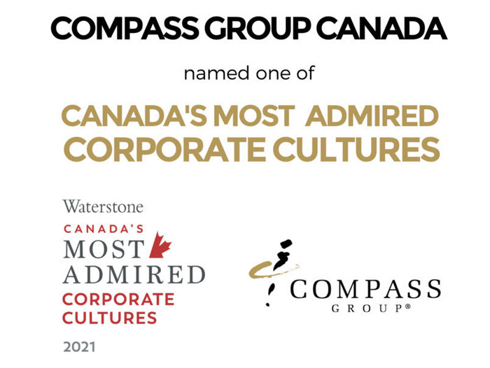 MISSISSAUGA, ON – Compass Group Canada announced today that they have been recognized as one of Canada’s Most Admired Corporate Culture 2021 by Waterstone Human Capital.