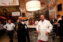 Mario Batali, Joe Bastianich, Lidia Bastianich and other partners led last night's tour, stopping at each section to offer samples and explain specifics. Said Batali, "This isn't a giant food court. This isn't a selection of restaurants under one roof. This is a retail store where we peddle the greatest of Italian products…. You ask any Italian and all of the smart Americans where the best meal they ever had in the last ten years was, and it was never in a restaurant. It was always in the house. And with these products, and this ideology, we're hoping that's what we're going to bring to New Yorkers." Home cooking, peddled by a man with dozens of restaurants.