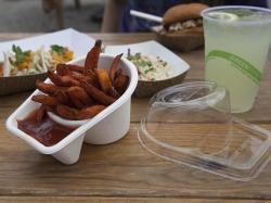 The Grip & Dip is designed for concession foods like French fries, chicken fingers and ice cream. It's easy to carry, with the dipper and the dip in one streamlined container.