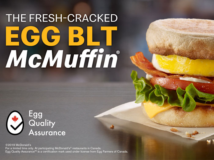 OTTAWA – Egg Farmers of Canada is proud to announce their work with McDonald’s Canada, beginning with the launch of the Egg Quality Assurance™ (EQA™) certification mark on McDonald’s advertisements this summer for the freshly-cracked Canada Grade A large egg in their limited-time Egg BLT McMuffin® sandwich.