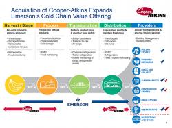 Cooper-Atkins’ food quality portfolio strategically expands Emerson’s broad cold chain portfolio of products and services for producer, retail, industrial and transportation customers. Emerson’s market-leading compressor technologies, controls and connected solutions optimize energy consumption and operational performance in the assets powering supermarket, foodservice and refrigerated shipping operations.