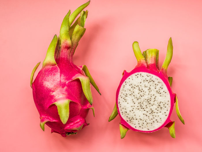 Much like the mystical creature that inspired its name, dragon fruit is fierce in appearance, with a scale-like skin in bold hues ranging from fiery yellow to bold magenta. However, its delicate flavor belies its imposing armor. With several different types varying in both color and taste, dragon fruit ranges in flavor from milder melon and kiwi-like to slightly sweeter berry profiles with notes of beetroot.