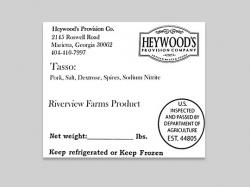 - 10-lb. cases of “Heywood’s Provision Company Tasso”