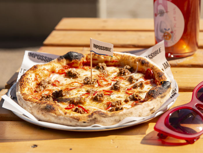 The Impossible Pizza flexitarian option introduces a new way to pizza, blending GA’s old world technique of naturally leavened dough and a wood-fired cook, with delicious new world innovation from Impossible Foods.