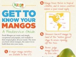 Orlando, FL — Although they are available year round and growing in popularity, many operators appreciate a short course on how to order, handle, and cut fresh mangos. Thanks to the new Get To Know Your Mangos infographic, produced by the National Mango Board, learning mango basics is now at every operator’s fingertips.