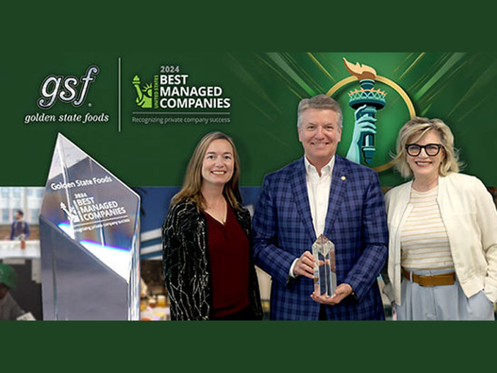 IRVINE, Calif. — Golden State Foods (GSF), one of the largest diversified suppliers to the foodservice and retail industries, is pleased to announce its selection as a 2024 US Best Managed Company. Now in its fifth year, the award, sponsored by Deloitte* Private and The Wall Street Journal, recognizes the achievements of U.S. private companies and the successes of their management teams.