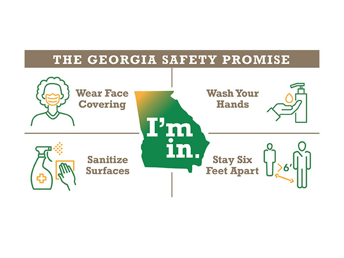 All Georgians can personally commit to the Georgia Safety Promise by following basic safety guidelines when in public spaces, including practicing social distance, wearing a face covering, washing and sanitizing hands, and supporting businesses that have committed to the Georgia Safety Promise.