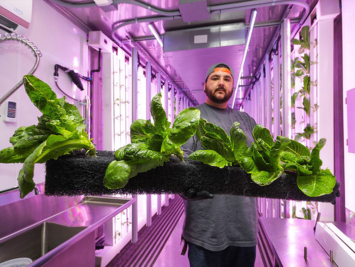 GrowPods provide year-round cultivation, and incorporate automated climate controls and optimized LED lighting to grow more plants per square foot – with yields up to 8 times greater than outdoor farms – while using just a fraction of the water. GrowPods also provide: