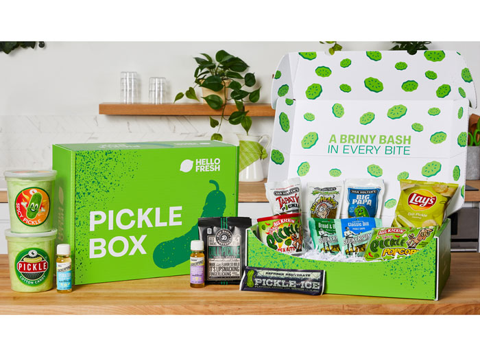 NEW YORK- Calling all pickle lovers – this is a really big dill! Recent survey data revealed that the majority of Americans (60%) would gladly pluck a pickle off your plate—with nearly half (45%) going so far as to trade a basket of fries for one*. That’s why HelloFresh, the world’s leading meal kit, is embracing the pickle craze with a delightful surprise for pickle enthusiasts – the HelloFresh Pickle Box. In celebration of National Pickle Month in July, the limited-edition Pickle Box features everything from tangy snacks like classic dill pickle chips to unique treats like a tub of pickle-flavored cotton candy. This specialty box is bound to make taste buds go gherkin’ with joy!