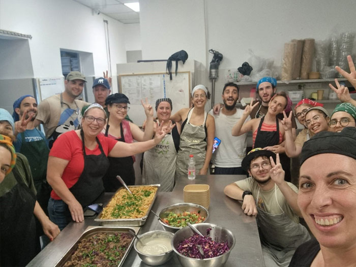 A Facebook post by Tal drew instant and overwhelming responses from eager volunteers and within 12 hours the kitchen on Tel Giborim Street (which coincidentally means “Hero’s Hill” in Hebrew) was abuzz with culinary activity. The facility had immediately been rigorously sanitized to strict vegan and kosher standards with approval from the Tel Aviv rabbinate.