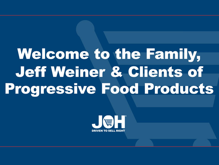 Billerica, MA – JOH is proud to announce that Jeff Weiner, owner of Progressive Food Products, has joined the team.