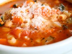 - Vegetarian Minestrone, a hearty soup made with diced tomatoes, red kidney beans, great northern beans, carrots, green beans, onions, lima beans, celery, escarole and whole-grain rich macaroni.