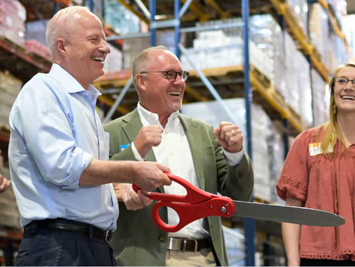 Local dignitaries and KeHE partners commemorated the first reveal of the expanded location during the expansion celebration event which included a ribbon cutting, welcome address from KeHE President & CEO Brandon Barnholt, warehouse tours, and lunch served by local vendors.