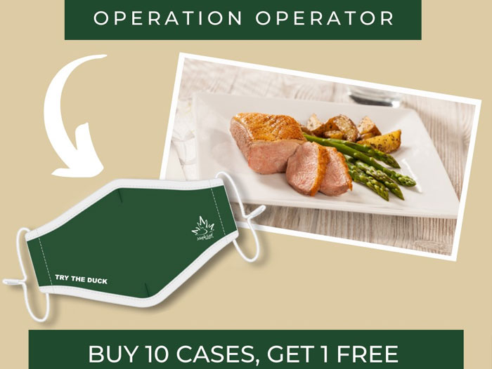 The promotion focuses on a rebate of one free case of product for every 10 cases ordered of roast half duck, duck breast, confit or pulled duck leg meat foodservice products. All rebate redeemers will also receive a free Maple Leaf Farms face mask with additional masks available for order.