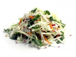 Ready-Set-Serve (RSS) Heart-Y Slaw is a vibrant and nutrient-dense blend containing cruciferous super foods and colorful root vegetables that can be used in a variety of creative ways across the menu. Made of julienned broccoli, shredded cabbage and kale, cauliflower pearls, sliced radishes, and shredded carrots, this fresh blend can be used as a salad, sauté, slaw, topping, or garnish, and is ready to serve right out of the bag.