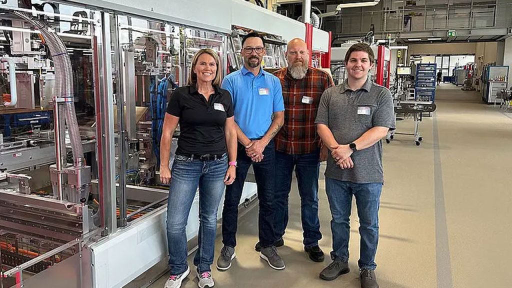To meet the demand, the Wisconsin-based company will soon add a new slice line to the packaging operation and install their fourth automated SOMIC Packaging, Inc. machine. Several representatives visited SOMIC’s corporate headquarters in Amerang, Germany, when FAT machine testing was completed.