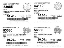 - 51.40-lb. of VACUUM-PACKED “BEEF GROUND COMPANY BURGER BLEND,” packed on 9/14/2016 with a lot number of “00028584” and case codes of 53085/CB136 in the upper left-hand corner of the label