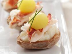 While prepping fresh potato skins for appetizers is always an option, operators with limited space and staff can select from a variety of processed Idaho® potato skins available from suppliers. Processed Idaho® potato skins can be customized to fit any menu or occasion. Signature toppings include sautéed vegetables, cheese, meats or poultry and chili. Garnishes range from gravy to pizza or taco toppings. Generate additional interest and participation with a do-it-yourself Idaho® potato skin bar that allows customers to mix and match toppings.