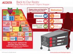 JACKSONVILLE, Fla.– In recent years, the natural and organics category has seen significant growth, but the profiles and motives of today’s natural/organics shoppers are drastically different than they were less than a decade ago. The latest Hot Topic Report, Back to Our Roots: The Rise of the Natural/Organic Shopper, from Acosta — a leading full-service sales and marketing agency in the consumer packaged goods (CPG) industry — explores modern-day natural/organic shoppers, including what they’re buying and from where, why they purchase these foods, and how they get information about the products’ ingredients and processes.
