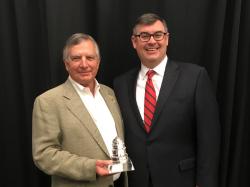 Arlington, VA – Jim Brown, President of Doc’s Food Stores, was presented with the National Grocers Association’s highest award for government and public affairs, the Clarence G. Adamy Great American Award. The award was presented on Tuesday, May 1, by NGA Executive Vice President Greg Ferrara during the Oklahoma Grocers Association Chairman’s Dinner in Oklahoma City, OK.