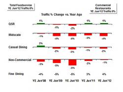 “In our forecast for the balance of 2012 and 2013, the foodservice industry’s growth is likely to depend on check increases with traffic remaining relatively flat,” says Bonnie Riggs, NPD’s restaurant industry analyst. “An improvement in the economy, especially reducing unemployment, would certainly help the industry improve.”