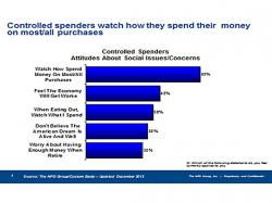 At the heart of the new normal is a different consumer mindset, a mindset shaped by a hard-hitting recession from which consumers are still recovering and ongoing concern about their financial stability, according to a new NPD report entitled, Planning for Growth in the New Normal Marketplace. Many consumers have had to adjust to having less, including less confidence in their government and their employers, and spending less. Nearly three of every four Americans today consider themselves cautious and controlled in their spending habits. More recently, the imposed payroll tax increase with its impact on wages, severe weather, and rising gasoline prices are all providing added stress. The new consumer mindset has restaurantoperators challenged to find ways to rebuild or enhance consumer trust in their brands and in the value of their offerings in order to grow at a faster pace, finds NPD.