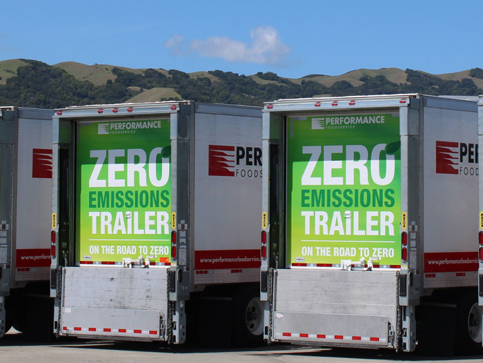 RICHMOND, Va.– Performance Food Group Company (PFG) (NYSE: PFGC) announced today the introduction of 10 net-zero emission refrigeration trailers to its fleet at the company’s Gilroy, CA distribution center. Through a partnership with Advanced Energy Machines (AEM), the Transport Refrigeration Units (TRUs) are solar-supported electric refrigeration solutions that are capable of supporting our foodservice distribution needs and have the capability of maintaining temperatures down to minus 20 degrees F.