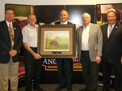 To recognize the company’s continued dedication to quality, Mark Polzer, the brand’s vice president of business development, presented the distributor with framed artwork by Jack Wells. PERFORMANCE Foodservice-Middendorf representatives receiving the print (from left) are: Steve Weissler, senior vice president and Certified Angus Beef ® specialist; Orville Middendorf; David Marsh, president; Don Middendorf; and Jim Sanderson, vice president of sales.