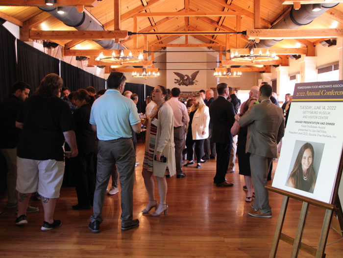The association welcomed attendees to a cocktail hour and dinner at the Gettysburg Museum and Visitor Center Tuesday evening. Prior to dinner, PFMA presented the 2022 Food Industry Trailblazer Award to Lisa Dell’Alba, president and CEO of Square One Markets, Inc., for her dedication, creativity and leadership.