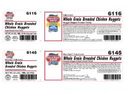 - 30-lb boxes containing 5-lb clear bags of “6116 Gold Kist Farms Fully Cooked Whole Grain Breaded Chicken Nuggets Nugget Shaped Chicken Patties” with use by/sell by dates of 10/23/2016 and 03/01/2017, and packaging dates of 10/23/2015 and 03/01/2016.