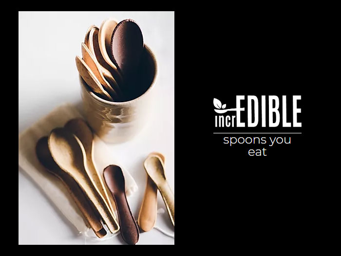 The U.S. disposes of 100 million plastics after a single use each day, and 91 percent of biodegradable plastic ends up in landfills instead of being reused or recycled. With its spoons, Planeteer aims to reduce the amount of waste sent to landfills. Incredible Spoons come in table-size and dessert-size options, and in sweet and savory flavor varieties, including Black Pepper, Caraway Seed, Indian Masala, Vanilla, and Chocolate. The spoons are all natural, vegan, non-GMO, and have a one-year shelf life. They last 45 minutes when used with cold desserts and 25 minutes with hot foods. Planeteer manufactures 50,000 spoons per day, with 1 million spoons eaten since February 2019. The spoons have won multiple awards, including a 2019 SKS Future Food award. In addition, to set off its carbon emissions, Planeteer plants 250 trees for every 100,000 spoons that are made.