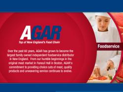 AGAR serves 5,000 grocery and restaurant customers across Massachusetts, Rhode Island, New Hampshire, Vermont, Connecticut and Maine from a 335,000 square foot facility in Taunton, Massachusetts. AGAR carries 12,000 SKUs, including its own Nautifish® and Bull Pen® brands.