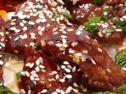 Toasted sesame, garlic, ginger, soy sauce, red and chili peppers, and chopped green onion capture an authentic Asian flavor profile.