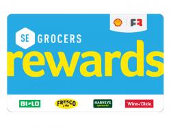 Beginning today, customers throughout all BI-LO, Fresco y Más, Harveys Supermarket and Winn-Dixie stores will be able to receive an SE Grocers rewards card to easily start earning points that can be redeemed for savings on groceries and fuel at Shell branded stations. The new SE Grocers rewards program will offer bonus points on hundreds of products throughout the stores, and customers are encouraged to check their receipts for even more ways to earn points. For additional flexibility, points will be available for up to two years, expiring December 31 of the following calendar year.