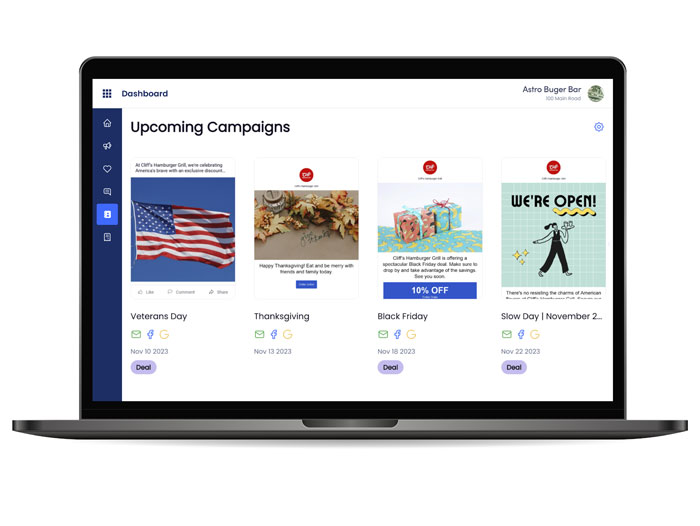 For busy restaurateurs, SpotOn Marketing Assist promises simplicity and effectiveness. Operators are prompted to answer a few quick questions about their business category, marketing objectives, deal preferences, time-based deals, and brand – all with the ability to change at any time. Business categories help provide marketing campaigns especially relevant to a restaurant’s service type and guests, for instance, happy hours for Mexican restaurants.