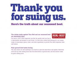 Taco Bell, a Yum Brands Inc. unit with almost 6,000 stores world-wide, responded swiftly with a spicy and potentially risky retort to the lawsuit. Its rebuttals include full-page newspaper ads headlined, "Thank you for suing us."