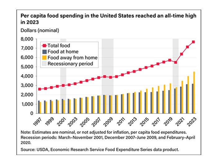 U.S. Consumers Increased Spending on Food Away From Home in 2023, Driving Overall Food Spending Growth